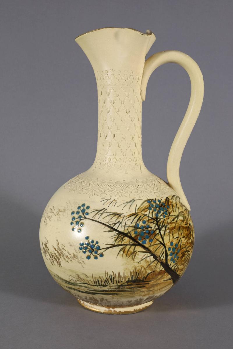 Claret Jug Decorated with Trees, Bats, and Clouds
