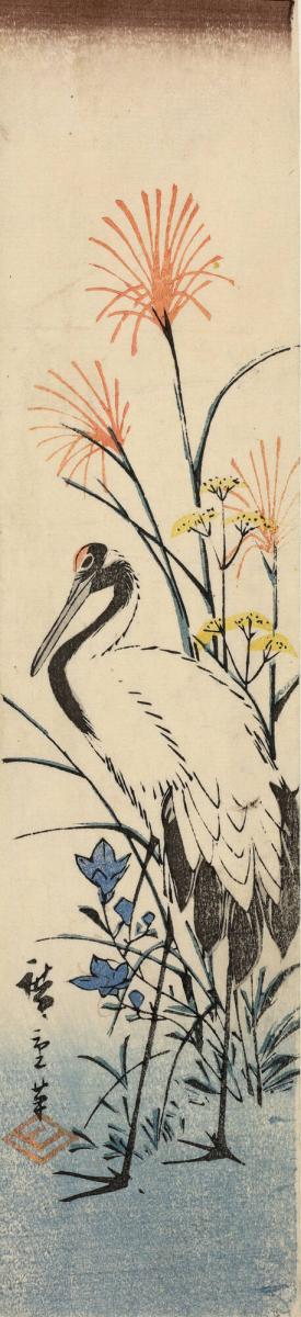 Crane and Autumn Flowers