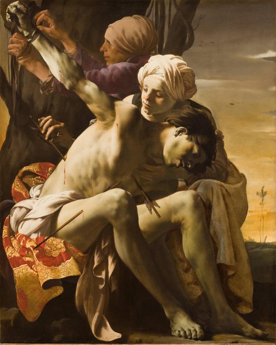 Saint Sebastian was invoked against the plague; one that struck Utrecht, Amsterdam, and Rotterdam in 1624 may have helped to occasion the present work. For the upright composition, Ter Brugghen was likely inspired by Caravaggio's Deposition, as well as by a lost work by his compatriot, Baburen. Ter Brugghen was the only one of the Utrecht Caravaggisti-Dutch artists from Utrecht active in Rome, influenced by the works of Italian artist Caravaggio- to live in Rome in the early years of the seventeenth century, during Caravaggio's activity there.
