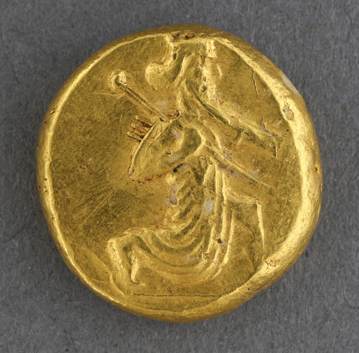 Coin (Daric): Obverse, Profile of Running Warrior with Spear and Three Arrows in Quiver; Reverse, Incuse Square