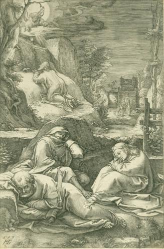 Not on viewDepicted here is one of twelve engravings that comprise the passion cycle executed by Hendrick Goltzius, dedicated to Cardinal Federigo Borromeo (1564-1631). Somewhat paradoxically, it was Goltzius' adeptness at replicating the styles of other artists that set him apart from his peers. According to the account provided in Karel van Mander's Schilder-Boeck of 1604, Goltzius became interested in imitating the styles of the old masters and of his contemporaries after visiting Italy in 1590. In this series, each print masterfully emulates the delicate crosshatching and softness of line that Dutch artist Lucas van Leyden (1494-1533) used in his engravings of 1512-20. As van Mander noted, Goltizus' compositions diverge from those of Lucas van Leyden, as Goltizus incorporates compositional elements taken from Albrecht Dürer's (1471-1528) passion cycles, as well as elements of the artist's own invention.