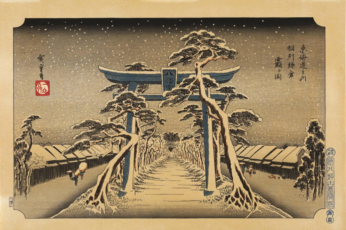 Entrance to the Hachiman Shrine at Tsurugaoka in Kamakura, Sagami Province, from the series The Tōkaidō