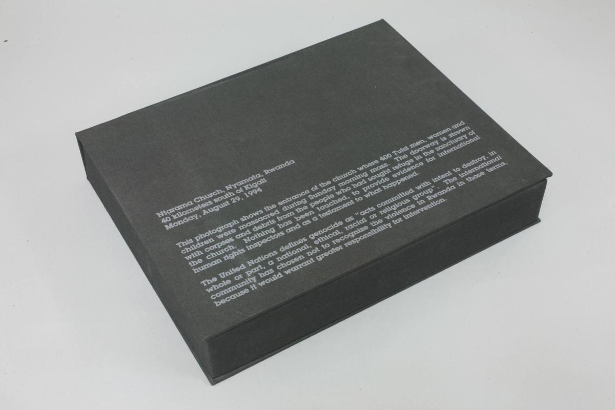 The AMAM collection includes three boxes from the installation. Two contain unseen photographs documenting the largest refugee camp in the world, at Katale. Inside the third box is another of Jaar's photographs, of the Ntarama Church in Nyamata. It, too, is concealed from view, but the text on the box describes it:
