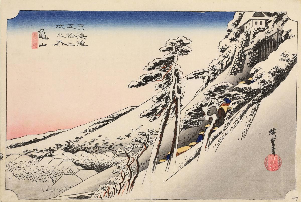Clear Weather after Snow at Kameyama, no. 47 from the series Fifty-three Stations of the Tōkaidō