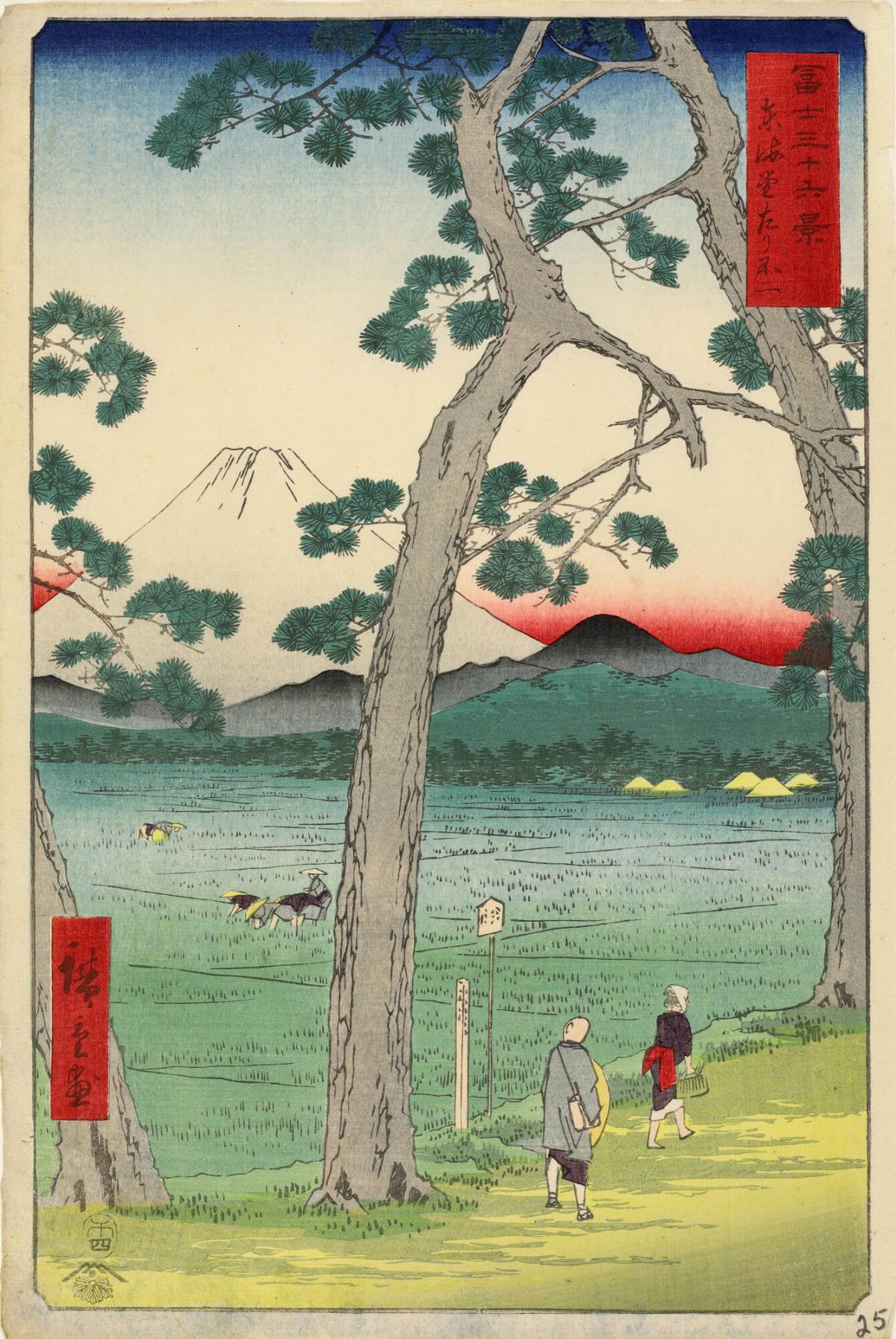 Mt. Fuji on Left Along the Tōkaidō, no. 25 from the series Thirty-six Views of Mt. Fuji
