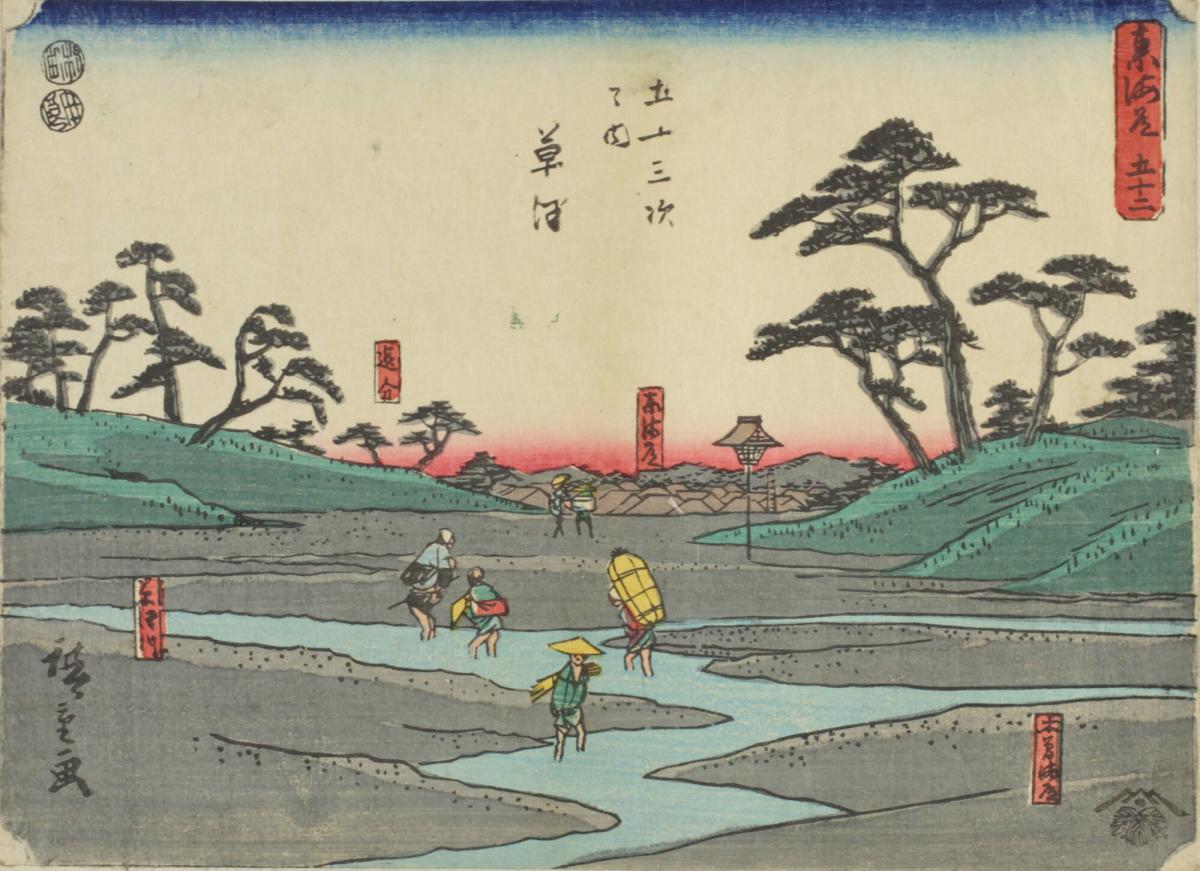 Juncture of the Kiso and Tokai Roads at the Kusatsu River, no. 52 from the series The Tōkaidō