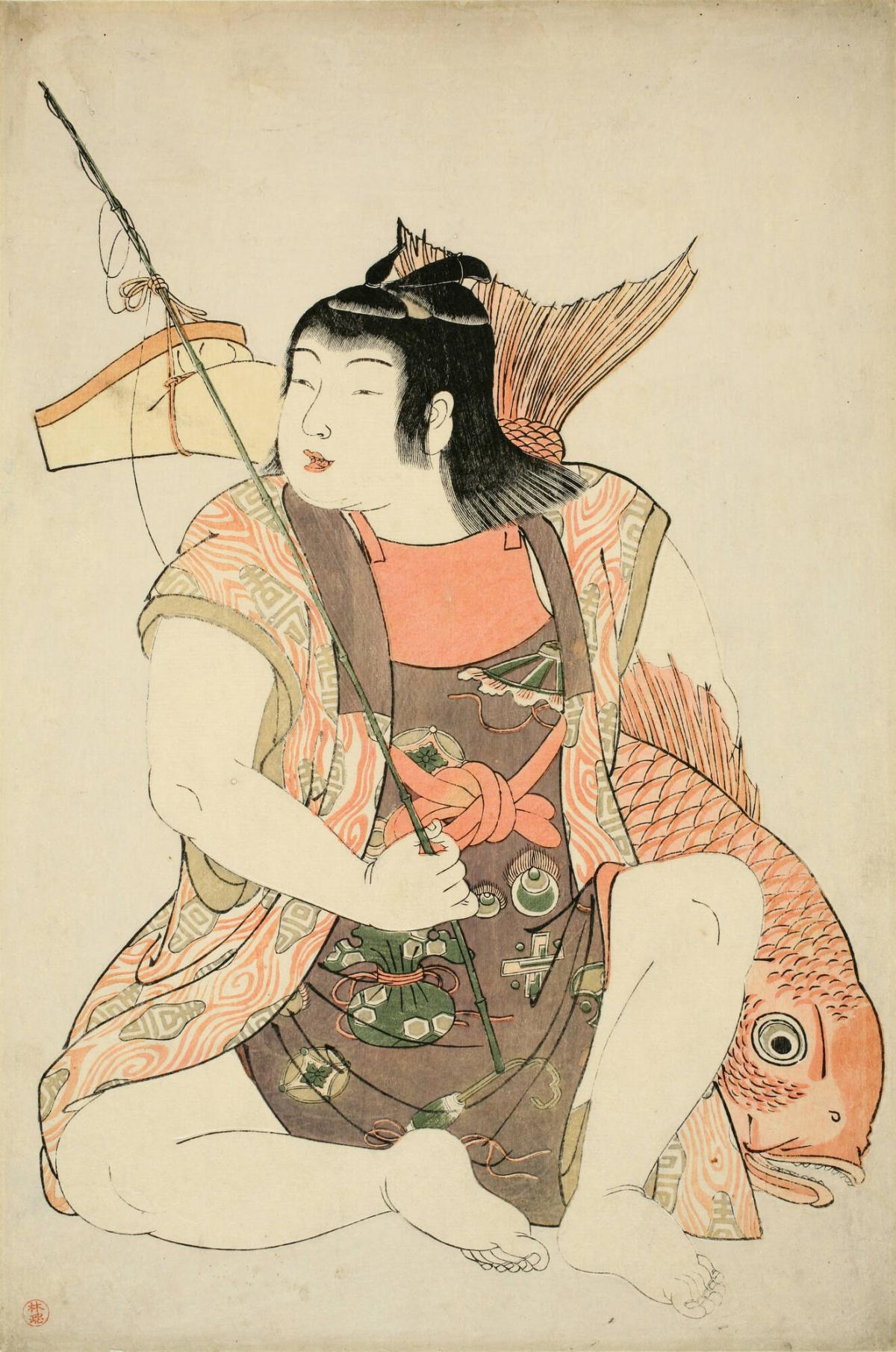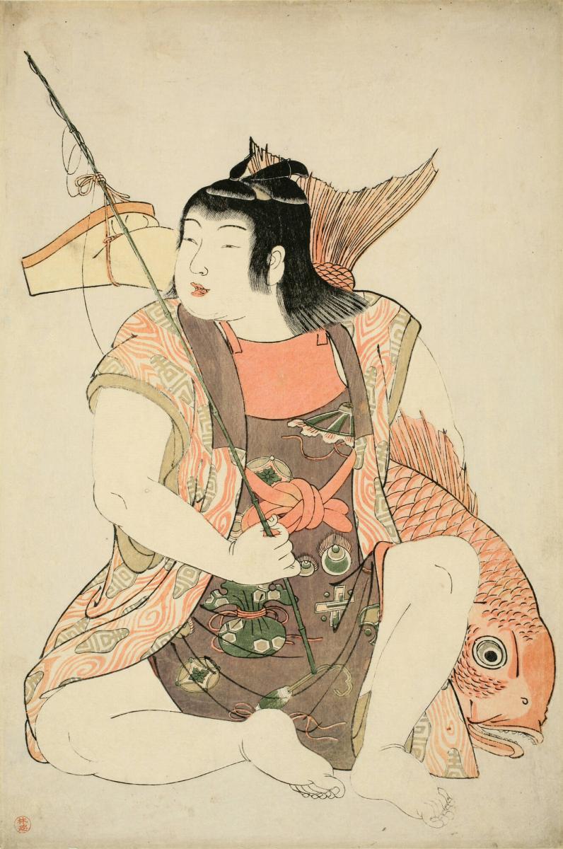 Boy with Sea Bream, Fishing Pole and Cap, Attributes of the God Ebisu, from the untitled series of Children as the Seven Lucky Gods