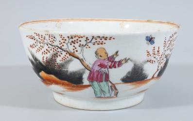 MediumPorcelain with iron-red, black, magenta, green, and blue glaze