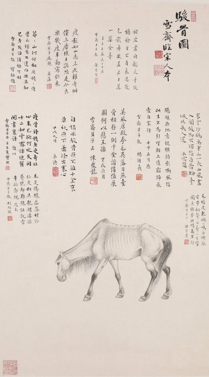 BiographyPujin 溥伒 (P'u Chin). Studio Name (hào): Xuezhai (Hsueh-chai) 雪斋/ 雪齋. Pujin, along with his cousin Puru (1896-1963) and his younger brother Puchuan (b. ca. 1913), all members of the Manchu imperial family, were educated in the Chinese classics and learned traditional styles of painting and calligraphy. Highly accomplished as a guqin player and copyist of paintings from the Song and Yuan (1279-1368) dynasties, Pujin became a professor and later Dean of the College of Art at Furen Catholic University in Beijing. In addition to landscapes and horses, Pujin also painted tigers and human figures, including an image of Zhong Kui, the Demon Queller.